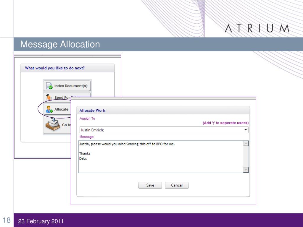 Atrium’s ePlacing Software Solution Gateway Lloyd’s Exchange MMT MMT kept as a backup. Message Poller DMS U-Manager Workflow db Other Workflows Routing Risk Screen MMT In-Box Underwriting System Lookup Underwriter from Policy Ref or UMR Third Party System Atrium System 20