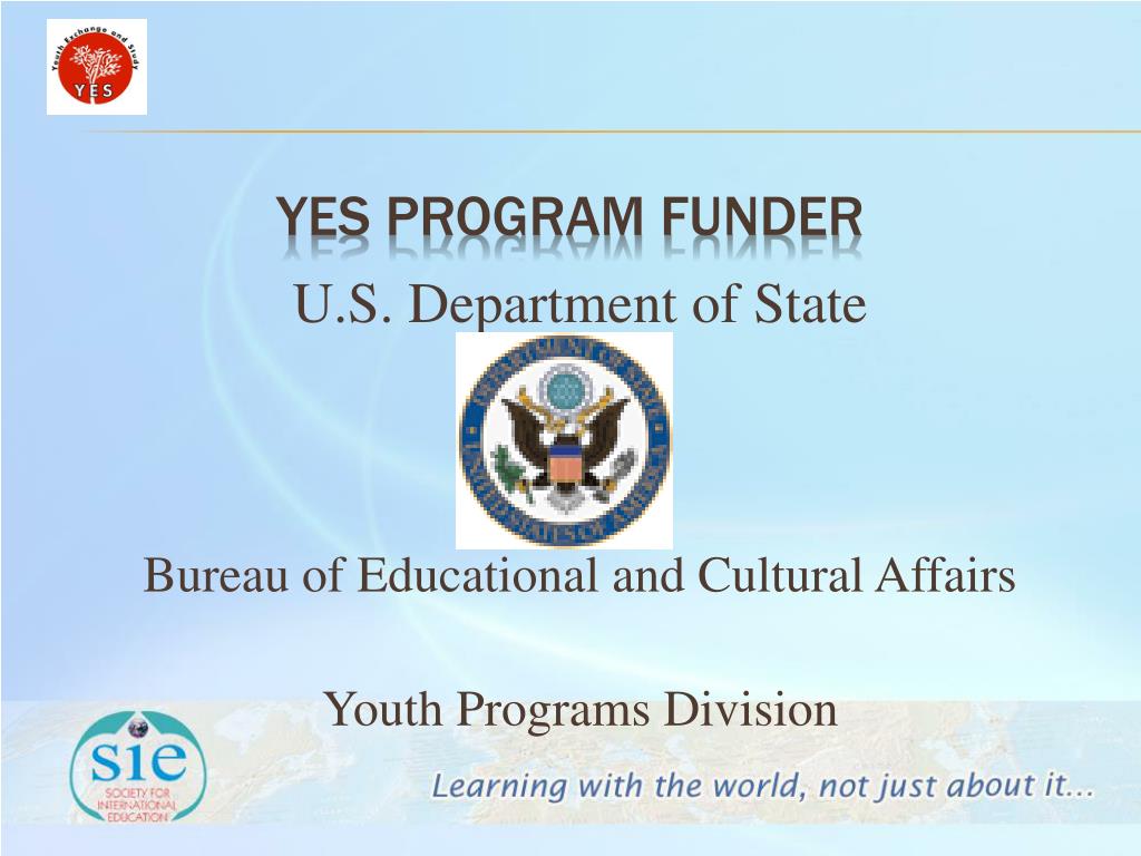 YES Program Funder U.S. Department of State Bureau of Educational and Cultural Affairs Youth Programs Division