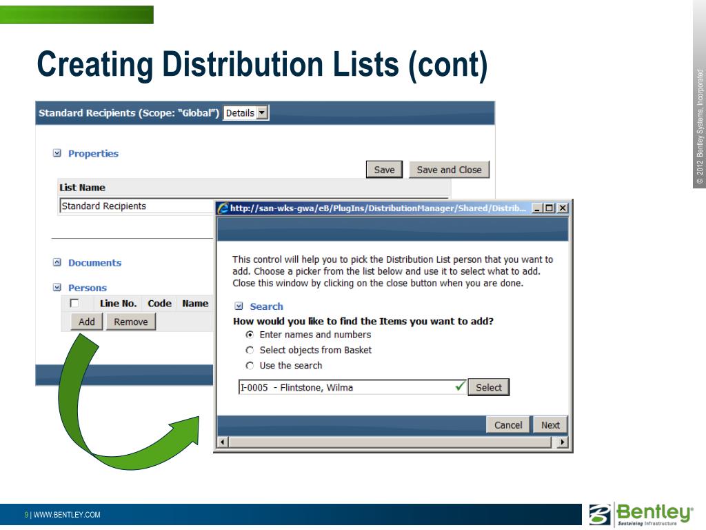 Distribution Lists • A reusable list of persons & addresses • Simplifies repetitive distributions to same audience • Includes preferred address and media type • Stand-alone or linked to documents