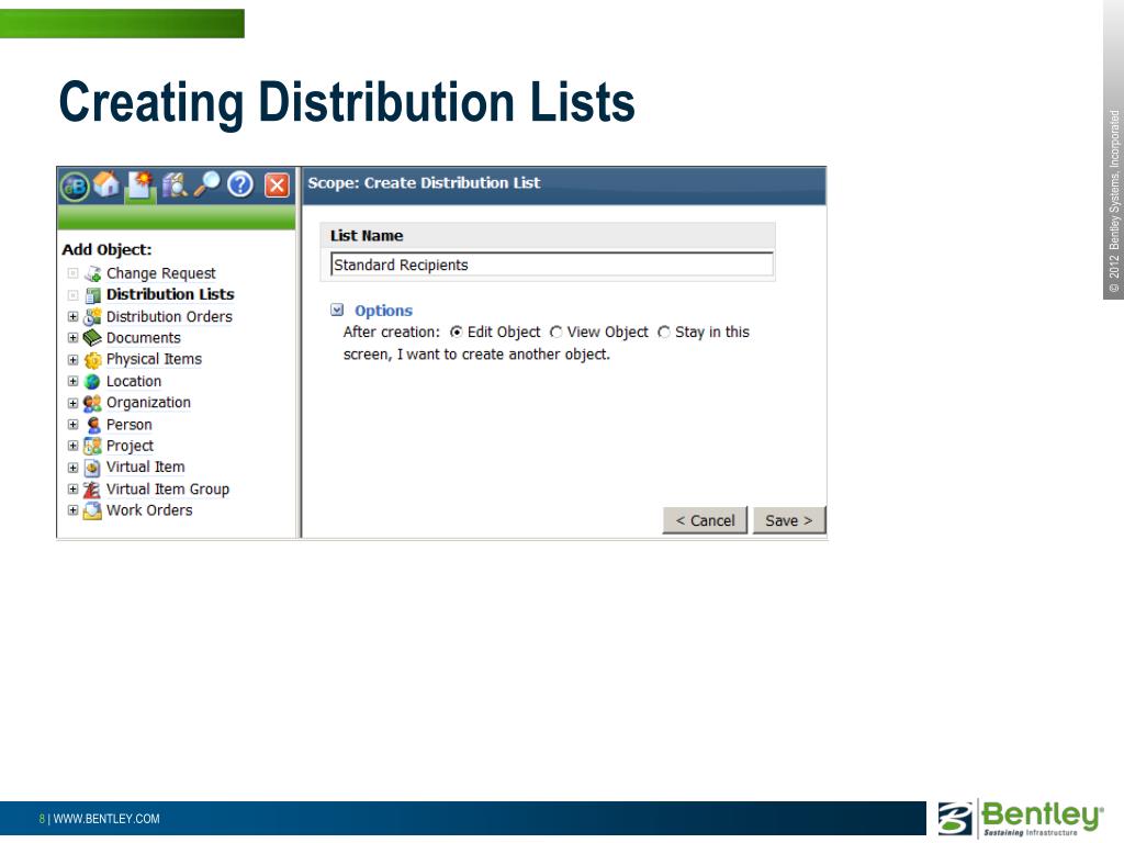 What We’ve Covered • The stages of the request and fulfillment process • What a distribution list is used for • The purpose of a distribution order • How to create a distribution order with the wizard • How to distribute copies and transmittals • How to view copy holders • How to acknowledge receipt of copies • What are the disposition options whenusers are finished with copies