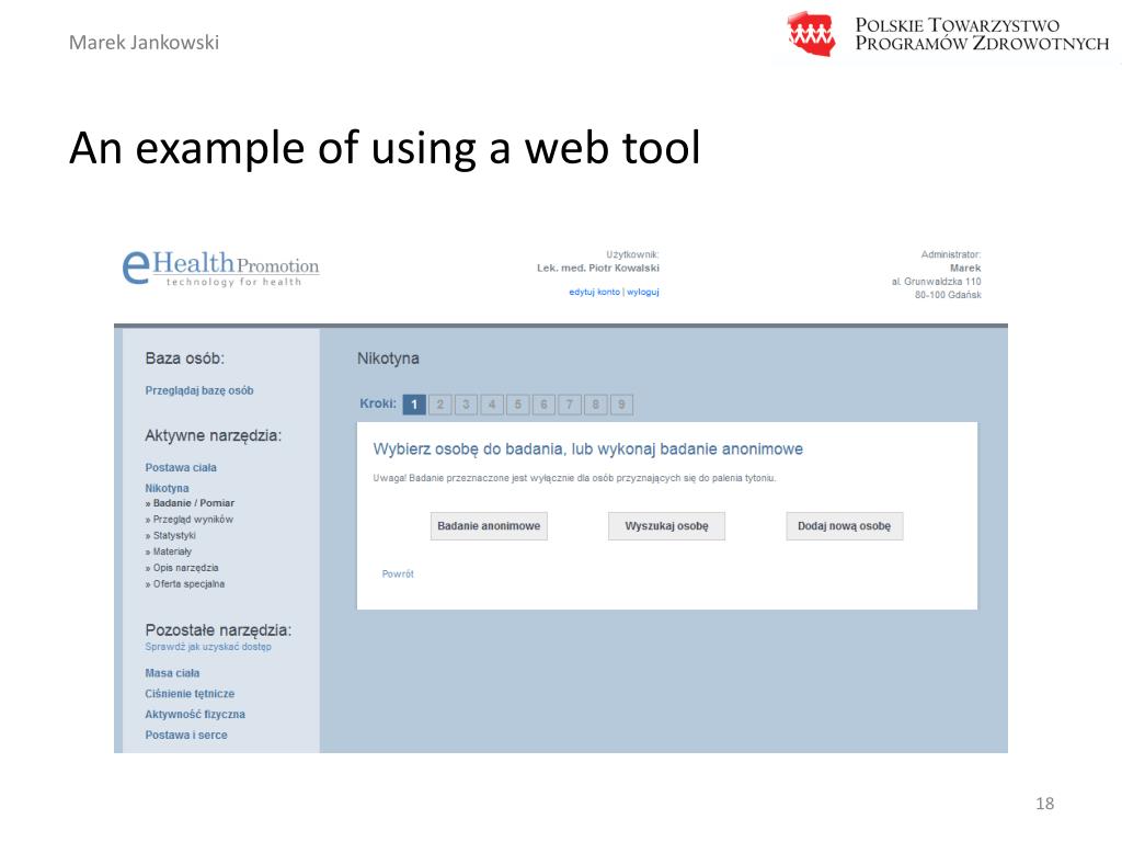 Web Tools for Health Promotion http://www.epromocjazdrowia.pl/index