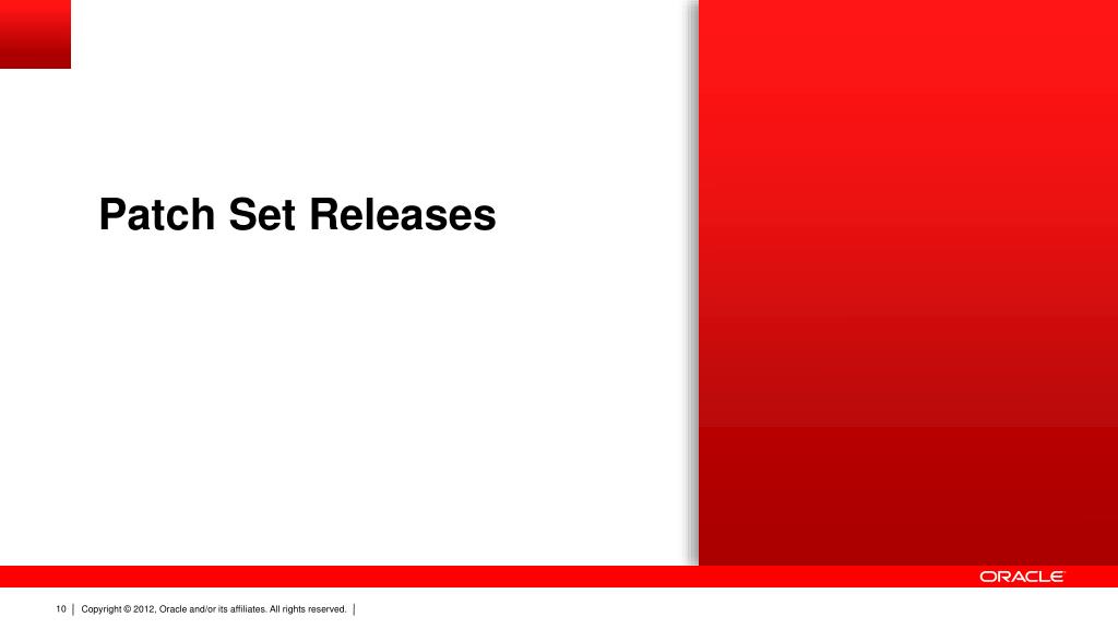 Program Agenda • Base Releases • Patch Set and Patch Set Update (PSU) Releases • Life Time Support Policy • Recent Alerts & Issues • Questions • Appendix