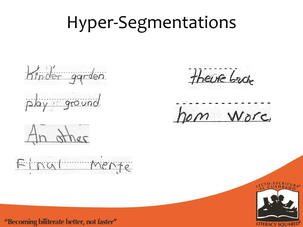 Dictado Example- 2nd Grade English The Park On the way to the park,I saw a big balloon in the sky.It was one of the biggest balloons I had ever seen! Spelling Word segmentation (hyper- and hypo-segmentation) Basic punctuation (Comma, period, exclamation marks) Basic capitalization Syntactical structures (sentences and phrases)