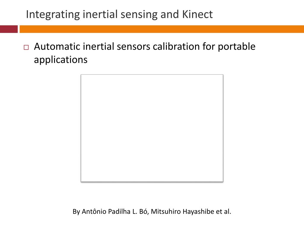 Integrating inertial sensing and Kinect • Automatic inertial sensors calibration for portable applications By Antônio Padilha L. Bó, Mitsuhiro Hayashibe et al.