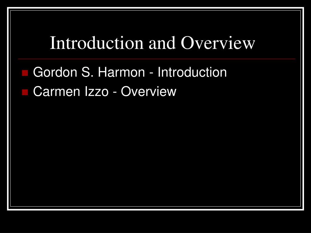 Introduction and Overview • Gordon S. Harmon - Introduction • Carmen Izzo - Overview