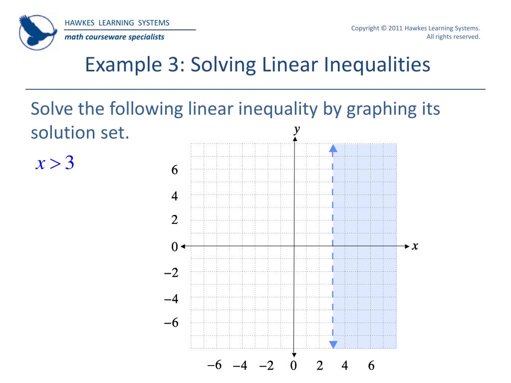 Example 3: Solving Linear Inequalities Solve the following linear inequality by graphing its solution set.