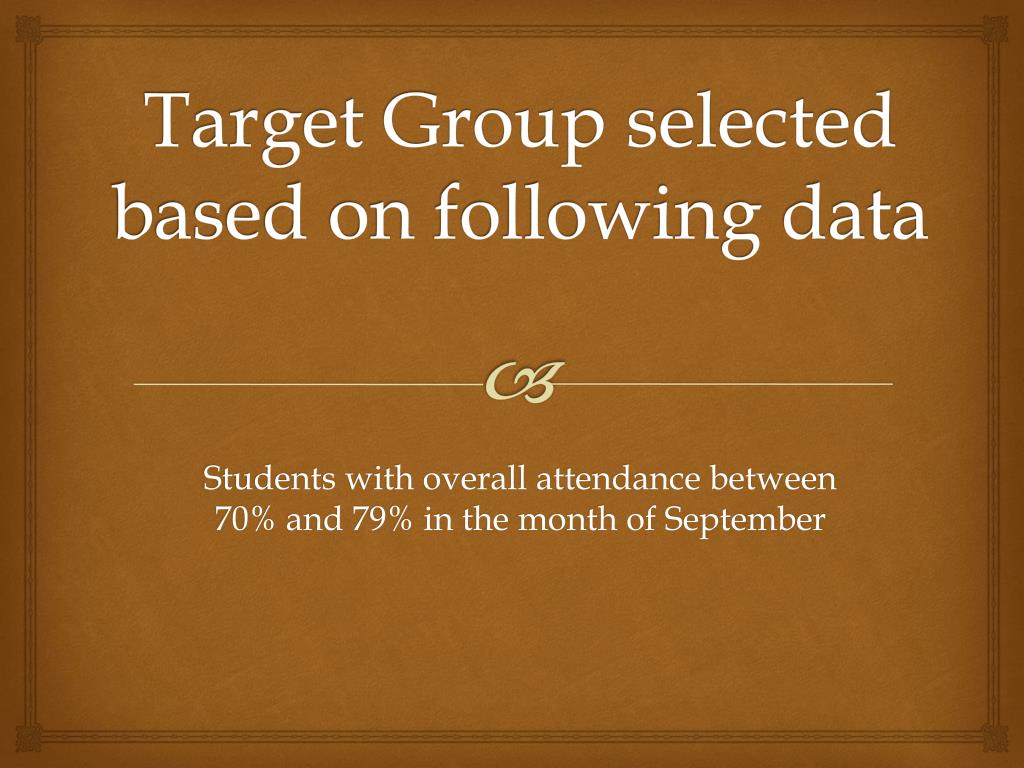 Target Group selected based on following data Students with overall attendance between 70% and 79% in the month of September
