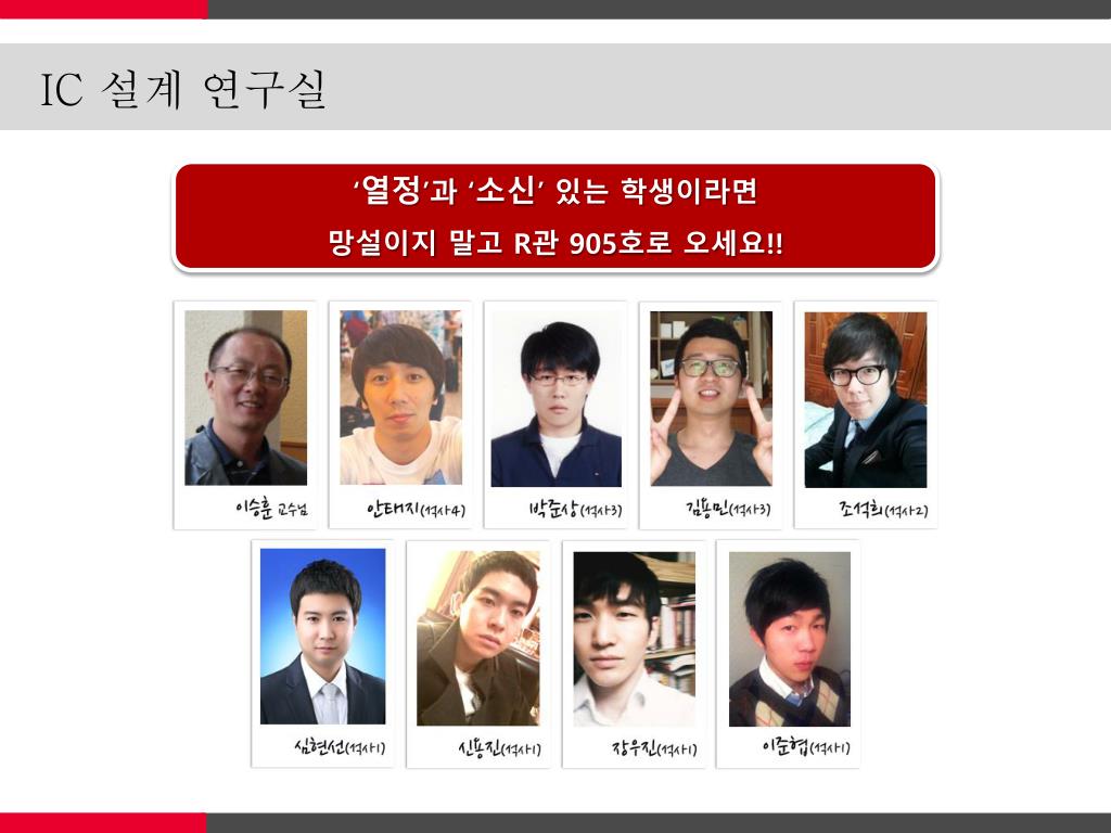 IC설계 연구실 ‘열정’과 ‘소신’ 있는 학생이라면 망설이지 말고 R관 905호로 오세요!!