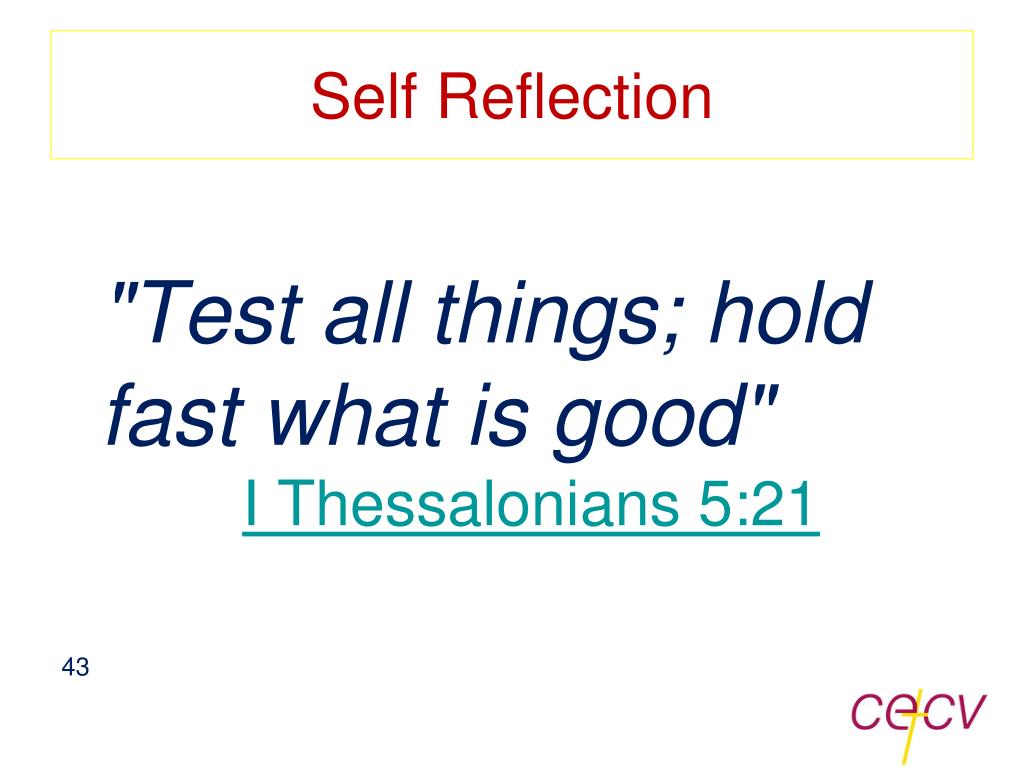 Self Reflection "Test all things; hold fast what is good" I Thessalonians 5:21 43