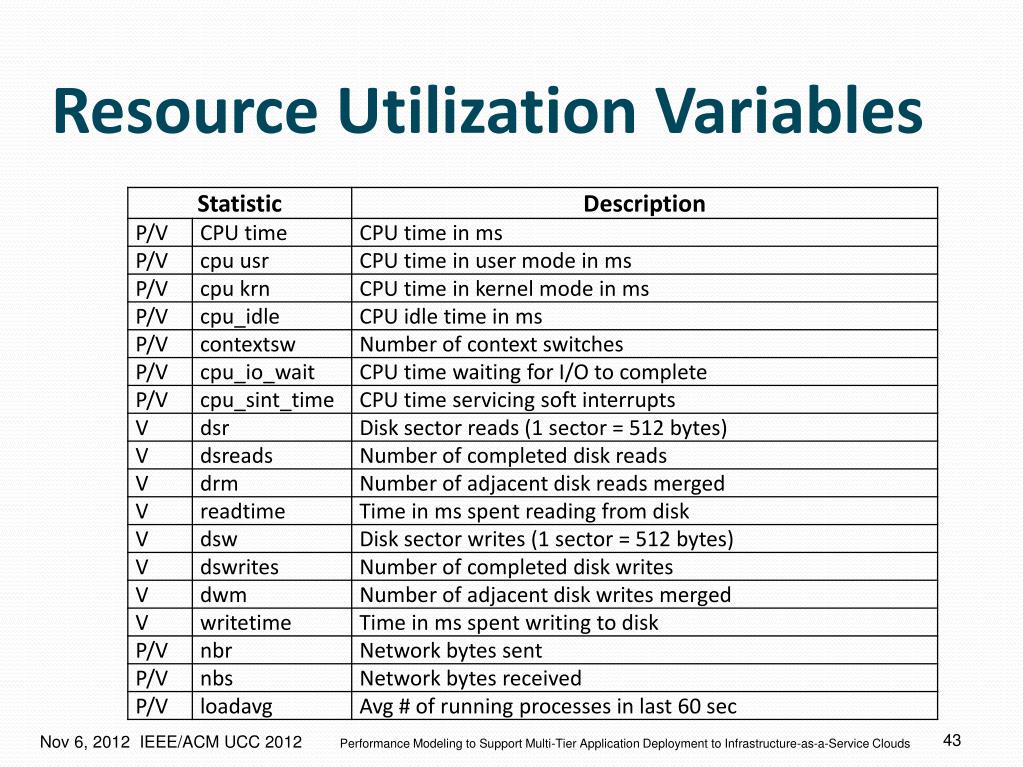 Resource Utilization Statistics • VMs • Reserve PM memory • Share CPU, disk, and network I/O resources • VM application performance • Reflects quality of load balancing of shared resources • Resource contention performance degradation • Resource surplus good performance, higher costs