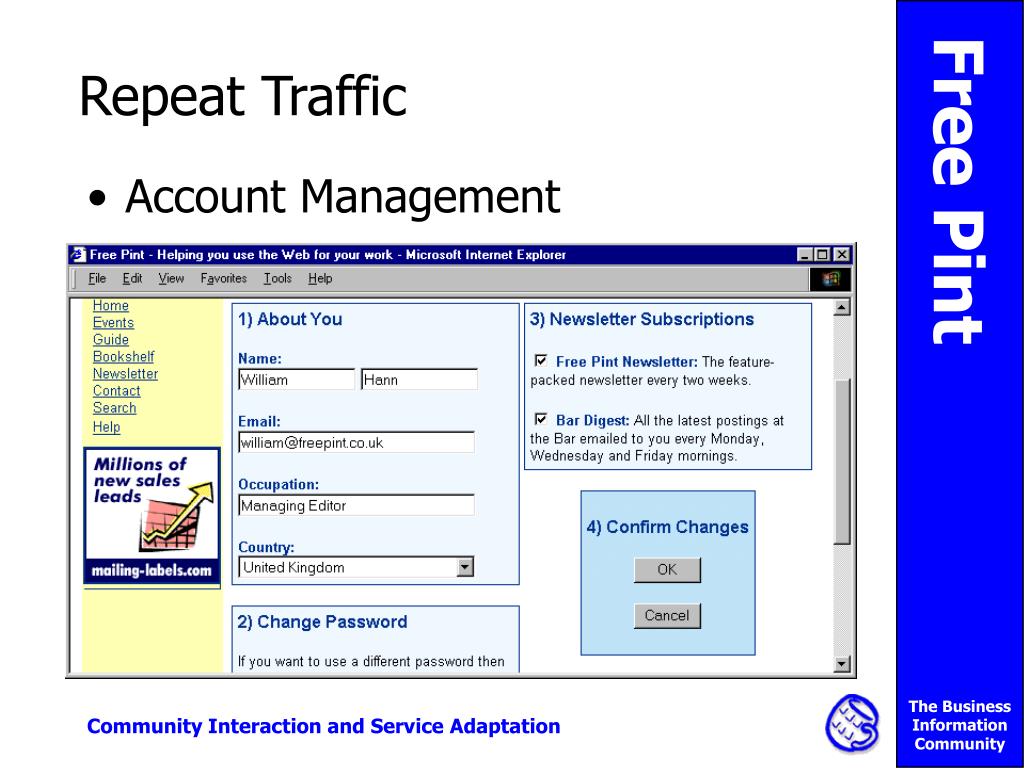 Repeat Traffic • Account Management Community Interaction and Service Adaptation