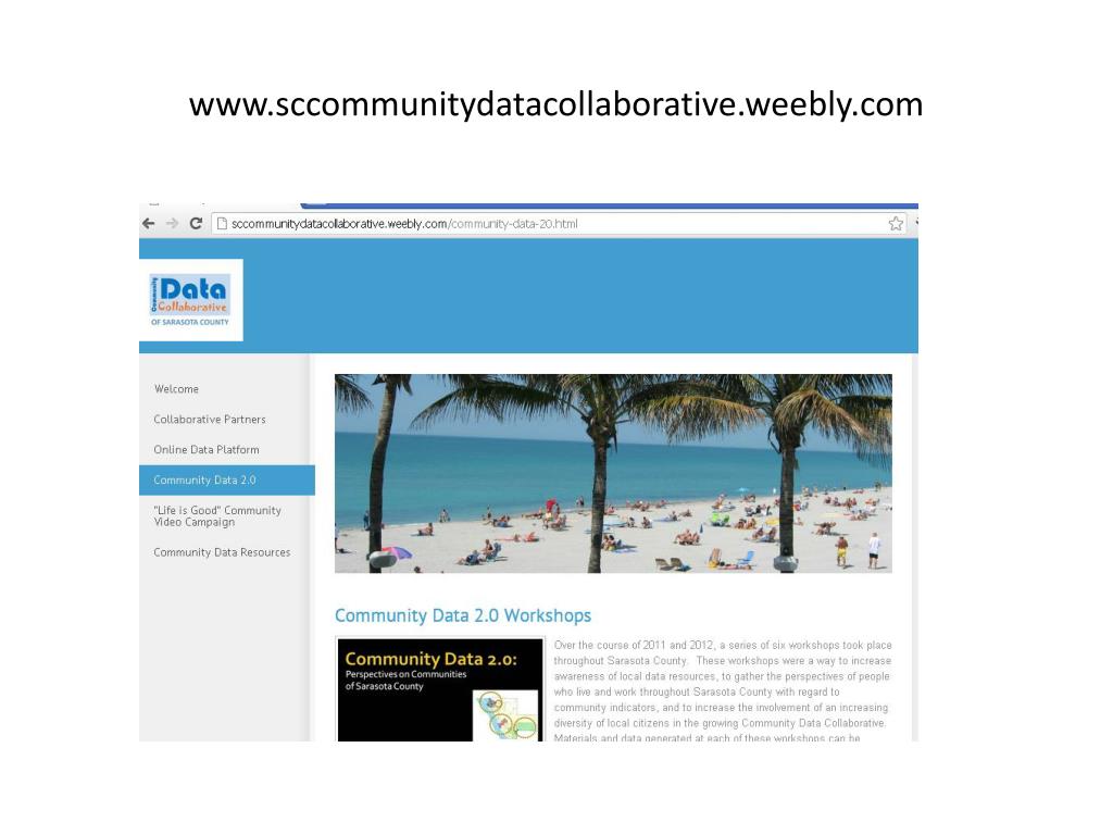 Reflection for Decision-Making -What it means to be a partner in the Data Collaborative -Lisa Nisenson’s article in This Week in Sarasota -Generating examples of people using and reflecting on data resources