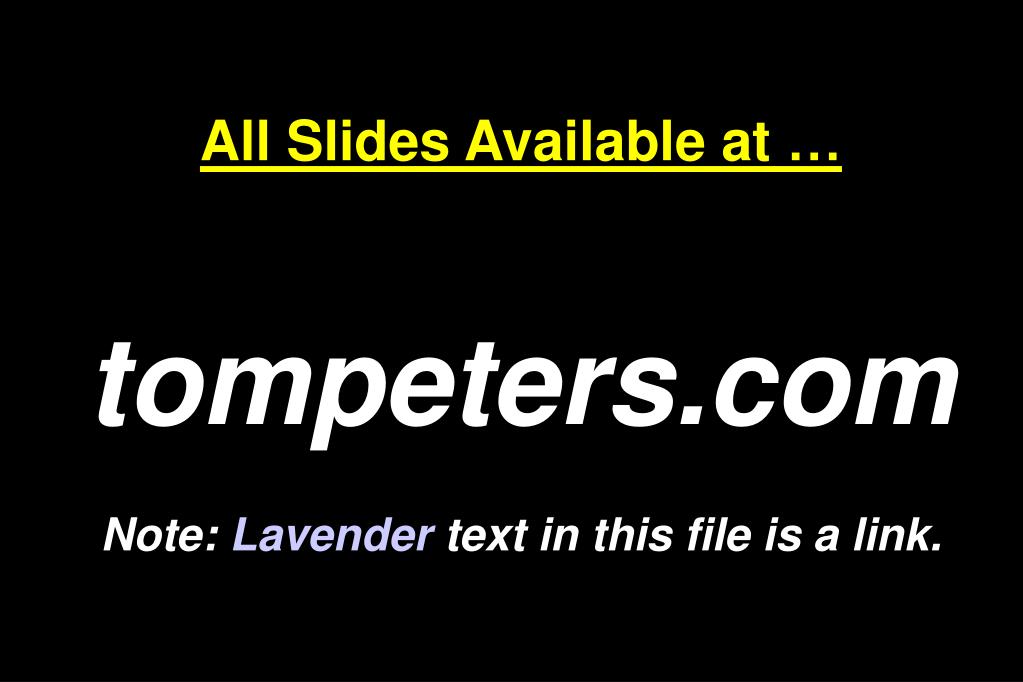 All Slides Available at …tompeters.comNote: Lavender text in this file is a link.