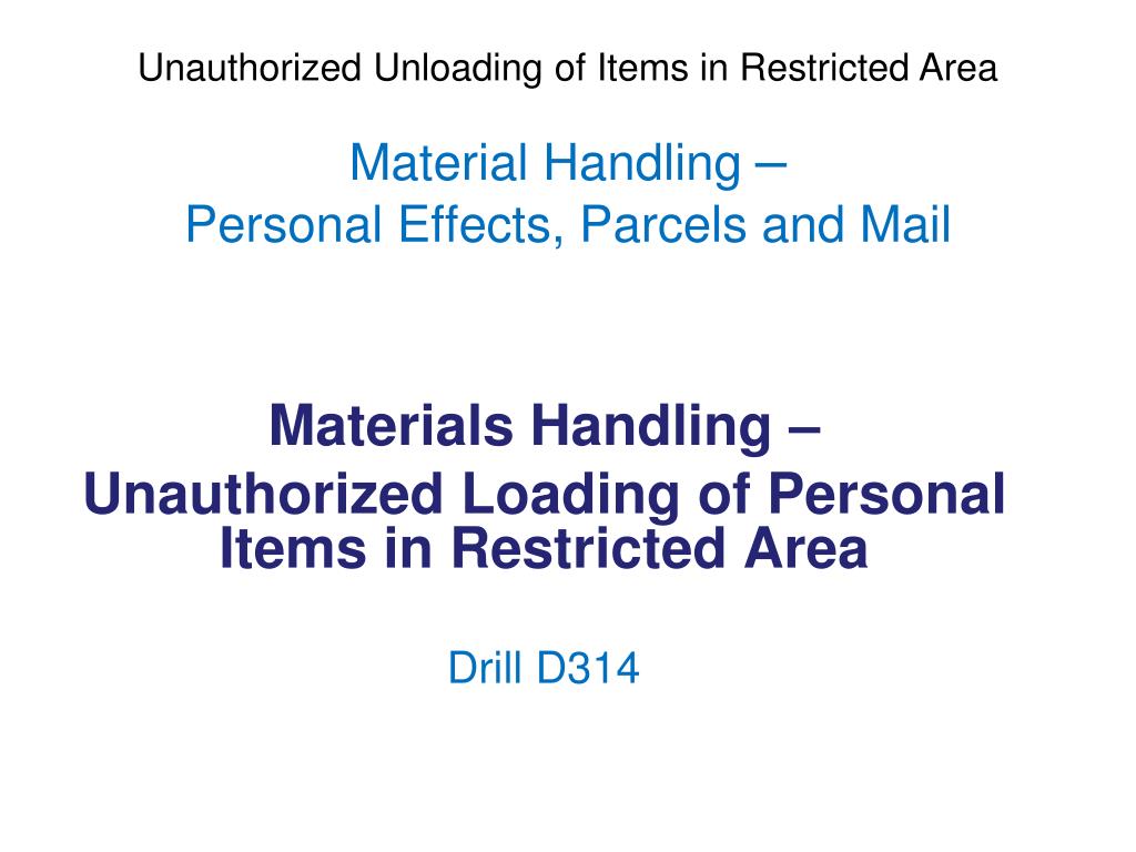 Material Handling – Personal Effects, Parcels and Mail Materials Handling – Unauthorized Loading of Personal Items in Restricted Area Drill D314