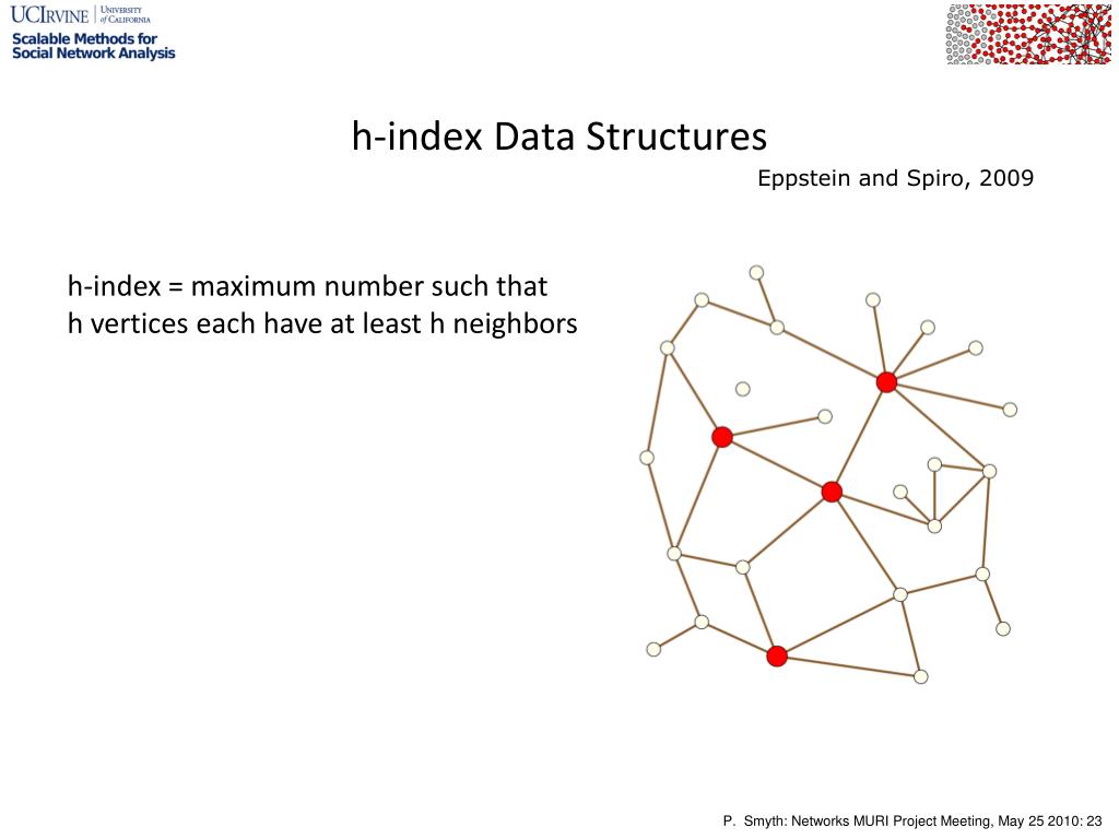 h-index Data Structures Eppstein and Spiro, 2009 h-index = maximum number such that h vertices each have at least h neighbors