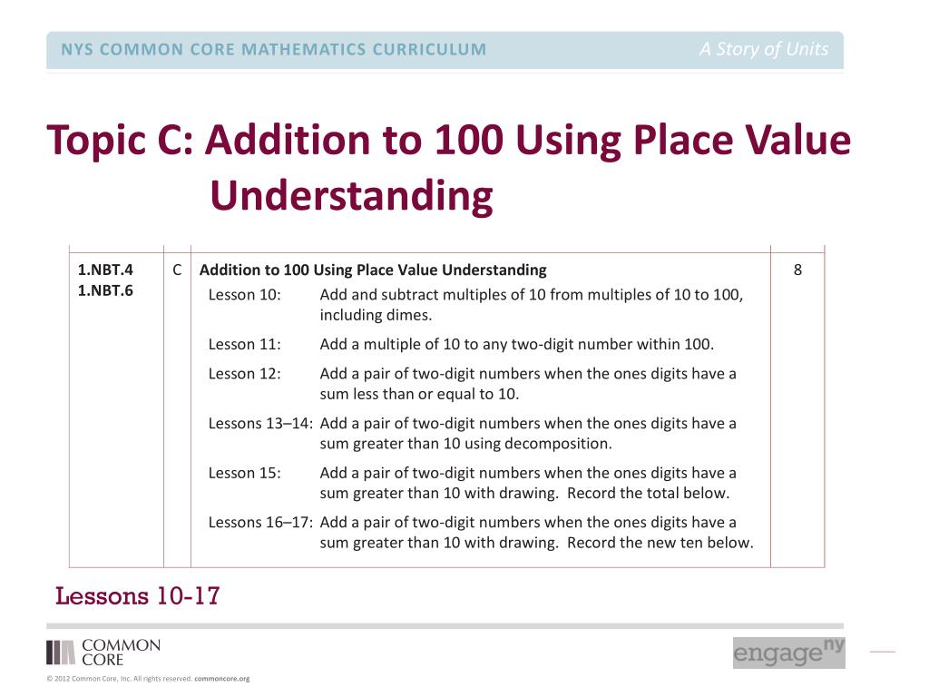 Topic C: Addition to 100 Using Place Value Understanding Lessons 10-17