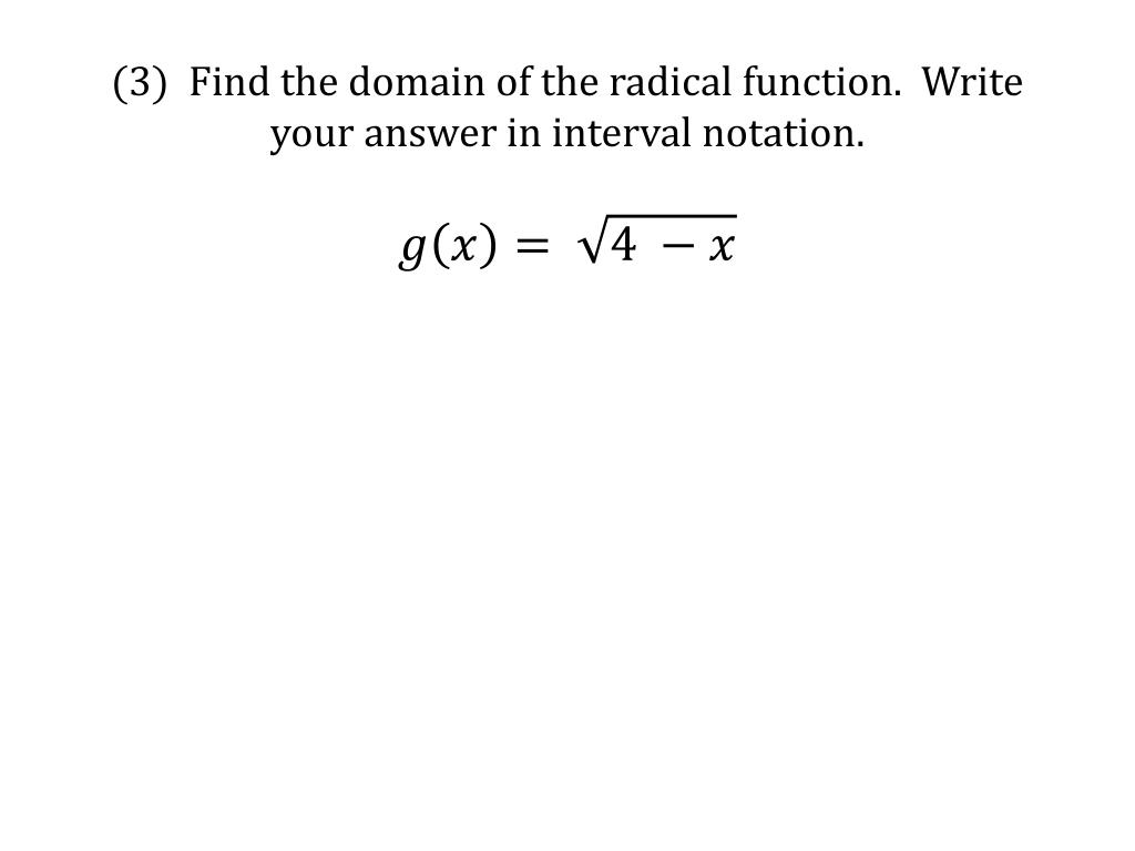 (3) Find the domain of the radical function. Write your answer in interval notation.