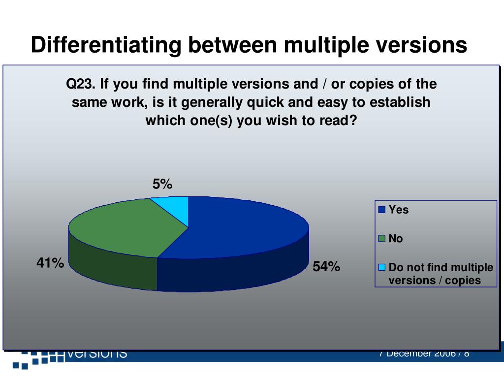 Scoping Study on Repository Version Identification (RIVER) • Led by Rightscom Ltd with partners London School of Economics and Political Science Library, University of Oxford Computing Services • Final report to JISC Scholarly Communications Group, March 2006 http://www.jisc.ac.uk/uploaded_documents/RIVER%20Final%20Report.pdf