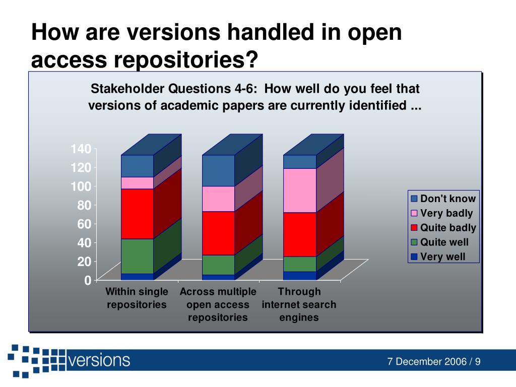The VERSIONS Project • VERSIONS : Versions of Eprints – user Requirements Study and Investigation of the Need for Standards • Funded by the Joint Information Systems Committee (JISC) under the Digital Repositories Programme • London School of Economics and Political Science (LSE) - lead partner • Nereus – consortium of European research libraries specialising in economics – associate partner • Runs from July 2005 to February 2007 • www.lse.ac.uk/versions