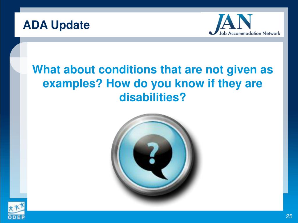 What about conditions that are not given as examples? How do you know if they are disabilities? ADA Update