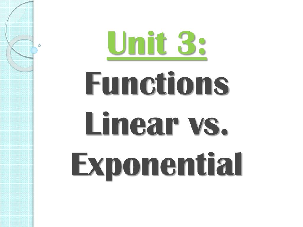 Wednesday, October 16 th Please complete the warm up . Blast From the Past 1. What is the constant in the expression 2 . The product of 8 and the sum of a number and 4 is greater than 10 . Unit 3: Functions Linear vs. Exponential. What is a Function? . Input. Output. y = 10 x + 5.