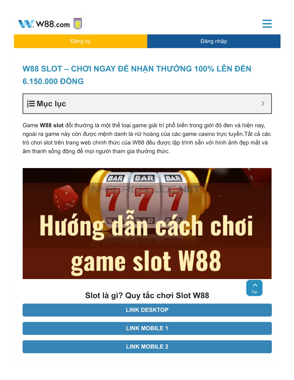 Đăng ký Đăng nhập W88 SLOT – CHƠI NGAY ĐỂ NHẬN THƯỞNG 100% LÊN ĐẾN 6.150.000 ĐỒNG Mục lục Game W88 slot đổi thưởng là một thể loại game giải trí phổ biến trong giới đỏ đen và hiện nay, ngoài ra game này còn được mệnh danh là nữ hoàng của các game casino trực tuyến.Tất cả các trò chơi slot trên trang web chính thức của W88 đều được lập trình sẵn với hình ảnh đẹp mắt và âm thanh sống động để mọi người tham gia thưởng thức. Top Slot là gì? Quy tắc chơi Slot W88 LINK DESKTOP LINK MOBILE 1 LINK MOBILE 2