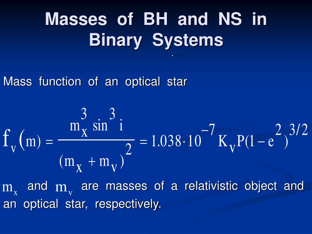 Masses of BH and NS in Binary Systems Mass function of an optical star and are masses of a relativistic object and an optical star, respectively.