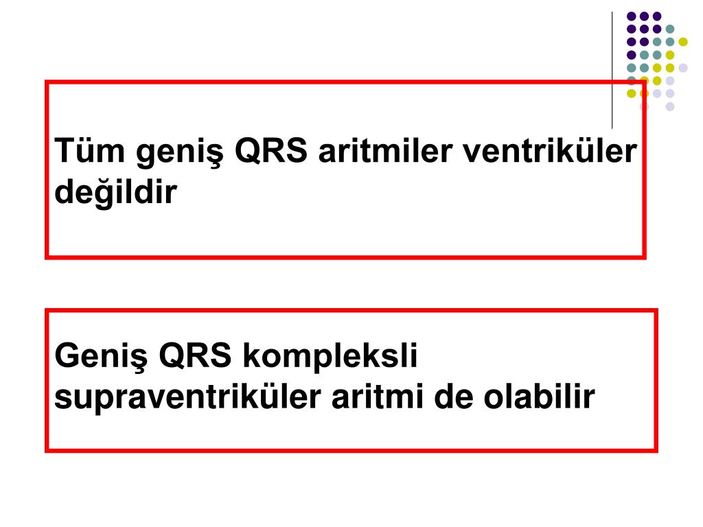 Tüm geniş QRS aritmiler ventriküler değildir Geniş QRS kompleksli supraventriküler aritmi de olabilir