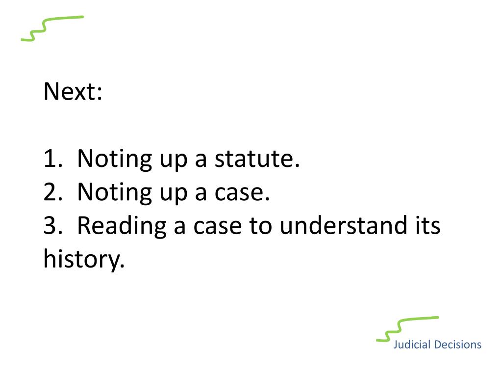 Next:1. Noting up a statute.2. Noting up a case.3. Reading a case to understand its history. Judicial Decisions