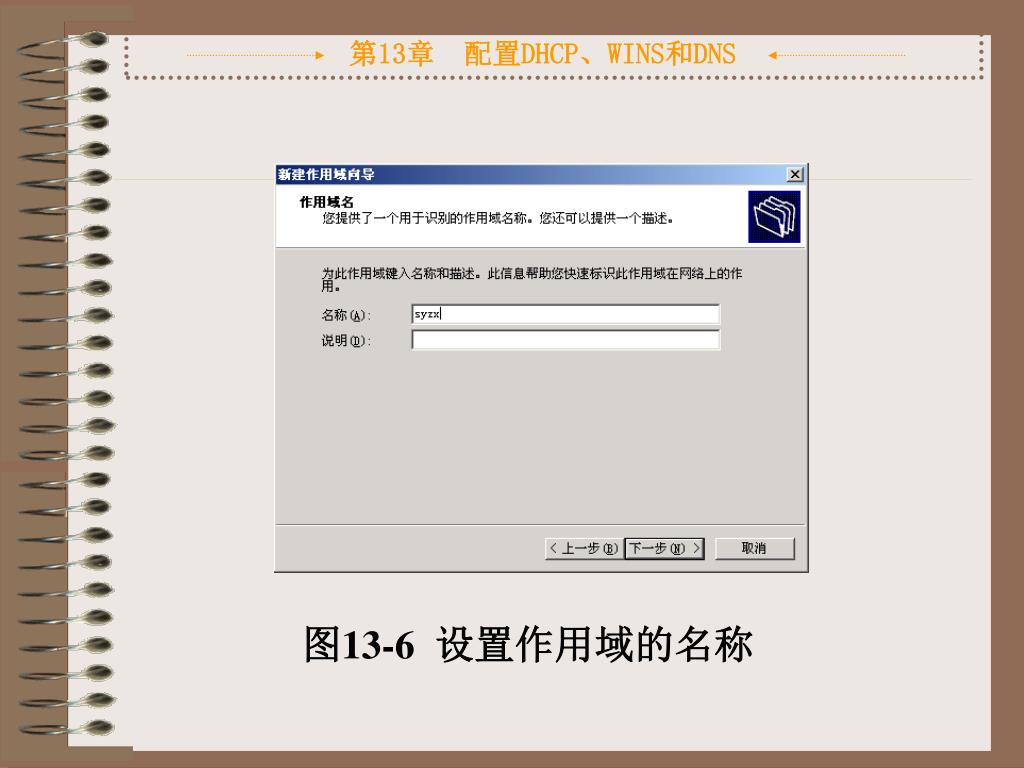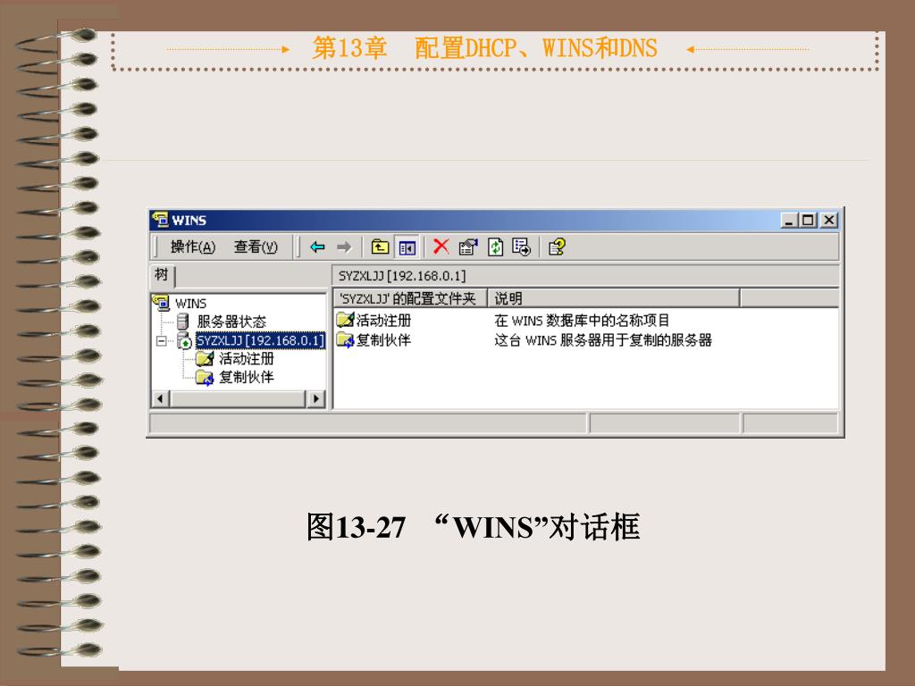 第13章 配置DHCP、WINS和DNS • 13.1 DHCP服务器的安装与设置 • 13.2 WINS服务器的安装与设置 • 13.3 DNS服务器的安装与设置