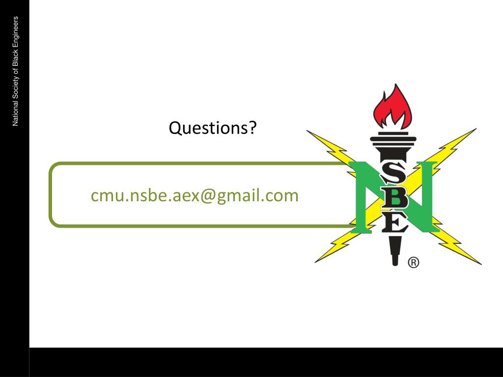 cmu.nsbe.aex@gmail.com National Society of Black Engineers Questions?