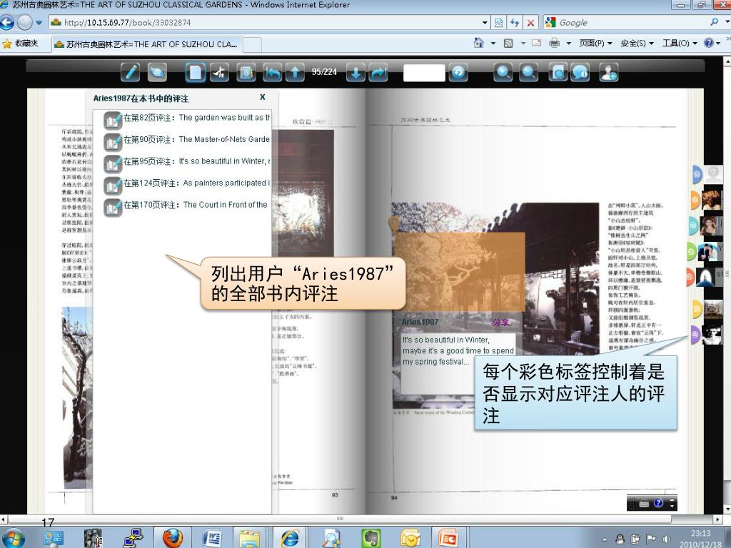 书内评注在个人页面上按照时间线顺序组织 每个评注必须和书内区域关联