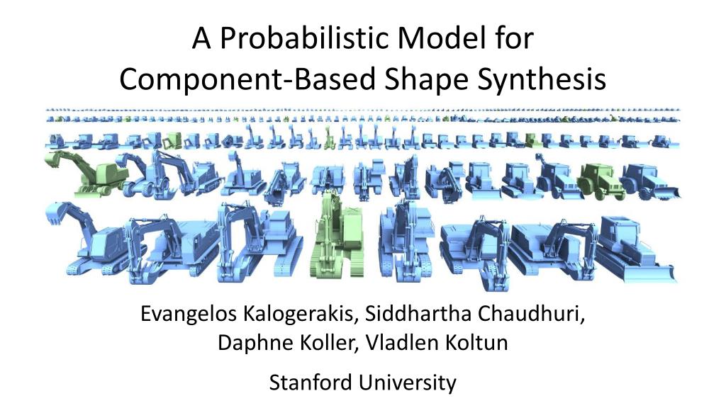 A Probabilistic Model for Component-Based Shape Synthesis EvangelosKalogerakis, Siddhartha Chaudhuri, Daphne Koller, VladlenKoltun Stanford University