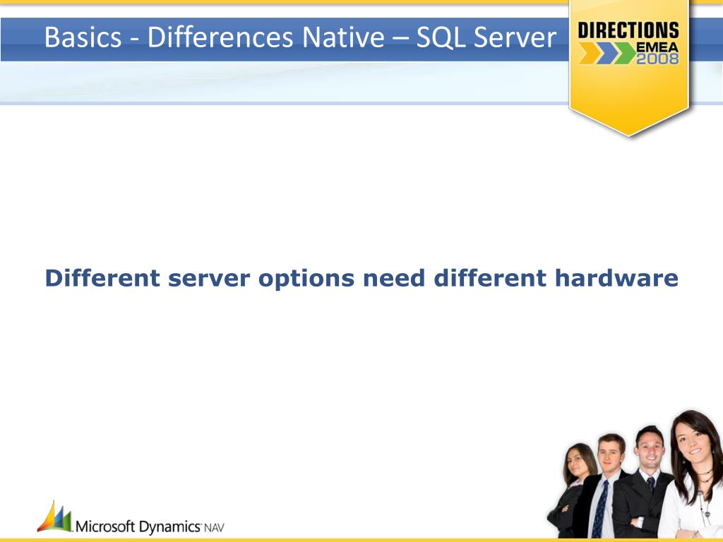 Basics - Differences Native – SQL Server Different server options need different hardware