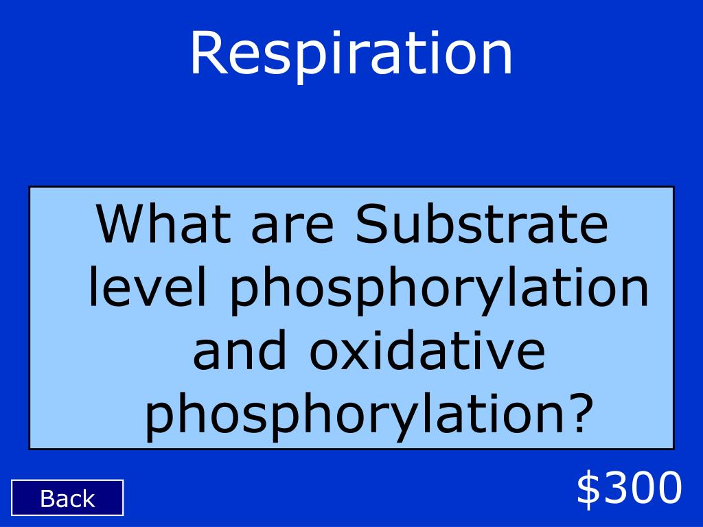 Respiration What are Substrate level phosphorylation and oxidative phosphorylation? $300 Back