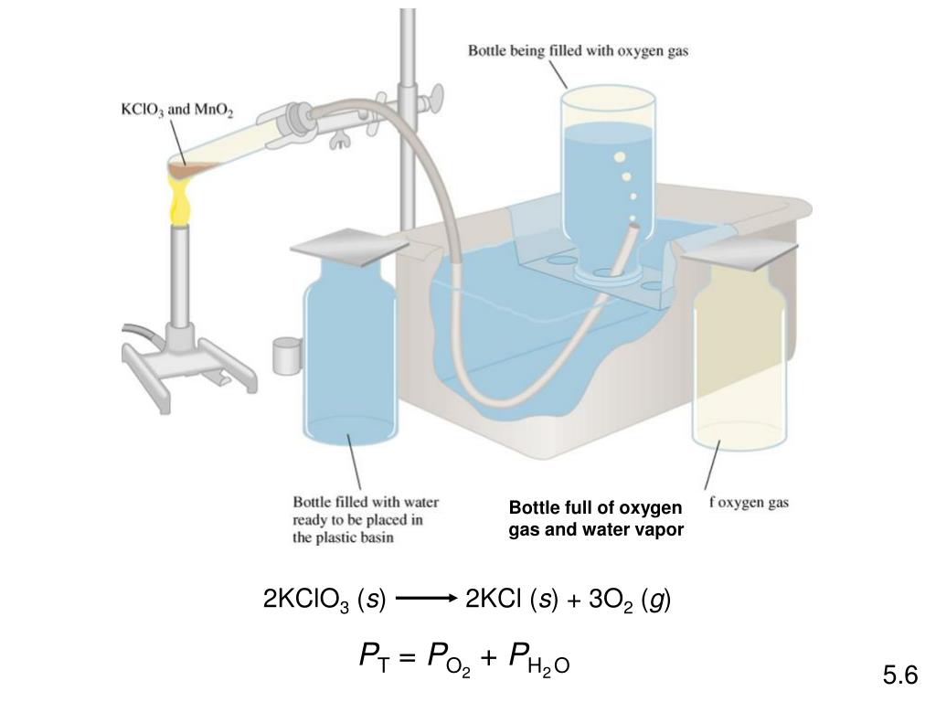 2KClO3 (s) 2KCl (s) + 3O2 (g) PT = PO + PH O 2 2 Bottle full of oxygen gas and water vapor 5.6