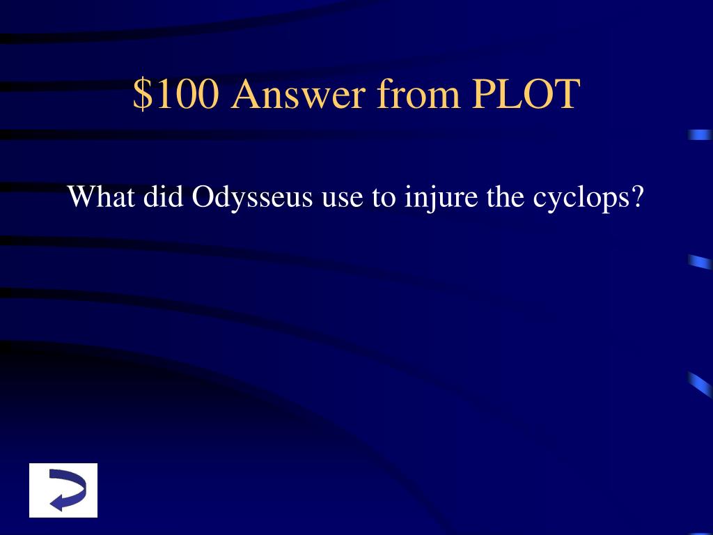 $100 Answer from PLOT What did Odysseus use to injure the cyclops?