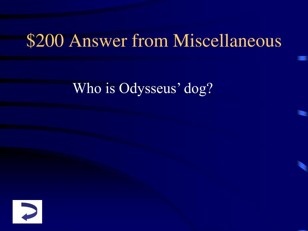 $200 Answer from Miscellaneous Who is Odysseus’ dog?