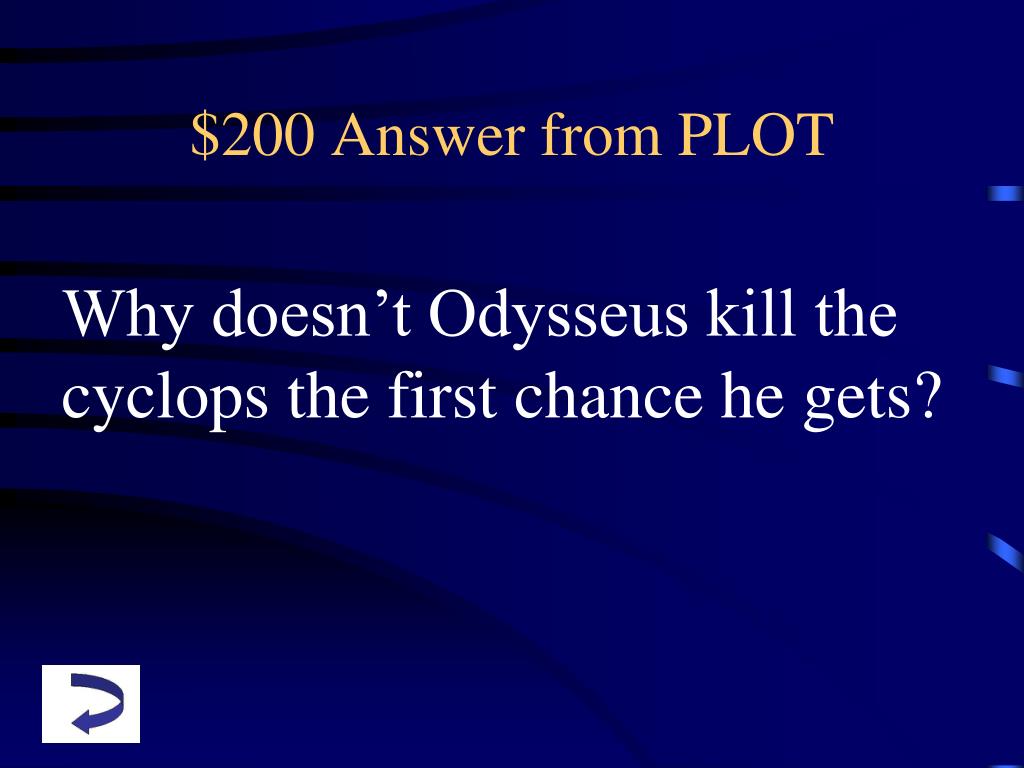 $200 Answer from PLOT Why doesn’t Odysseus kill the cyclops the first chance he gets?