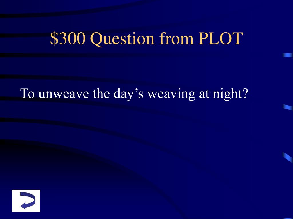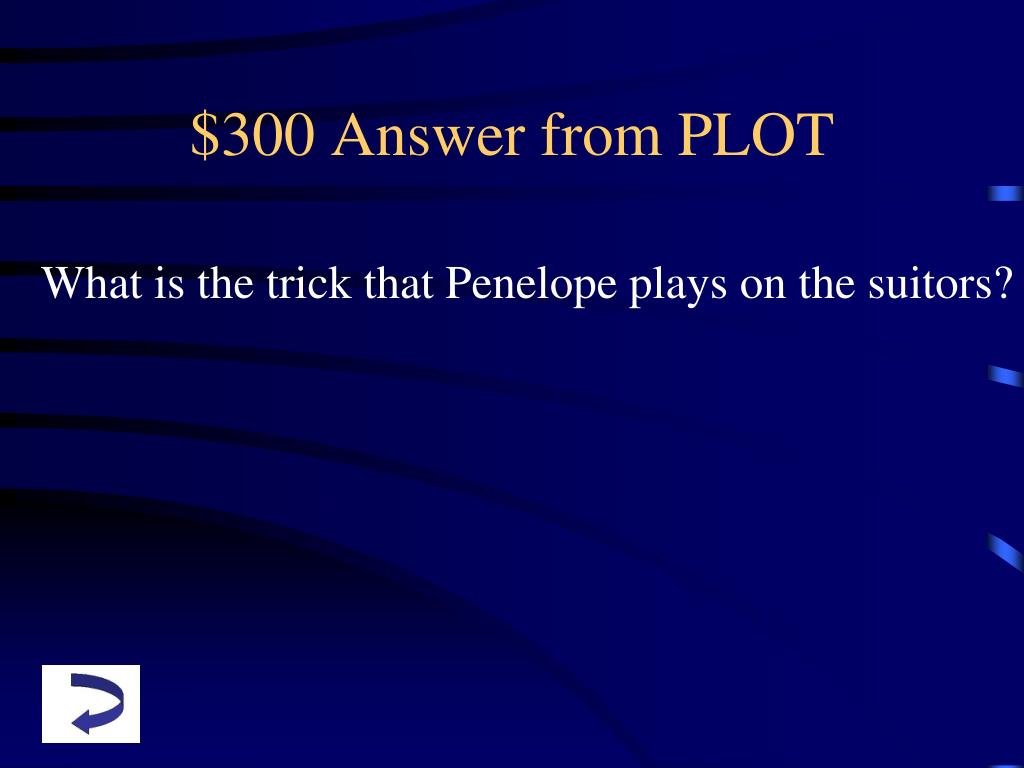 $300 Answer from PLOT What is the trick that Penelope plays on the suitors?