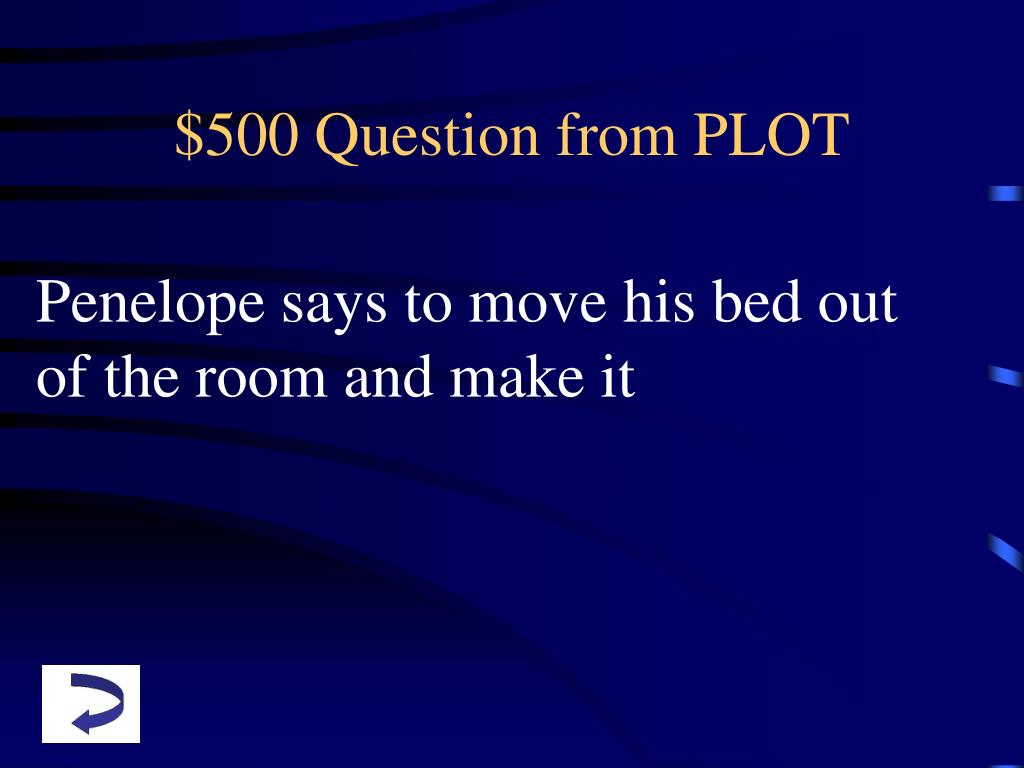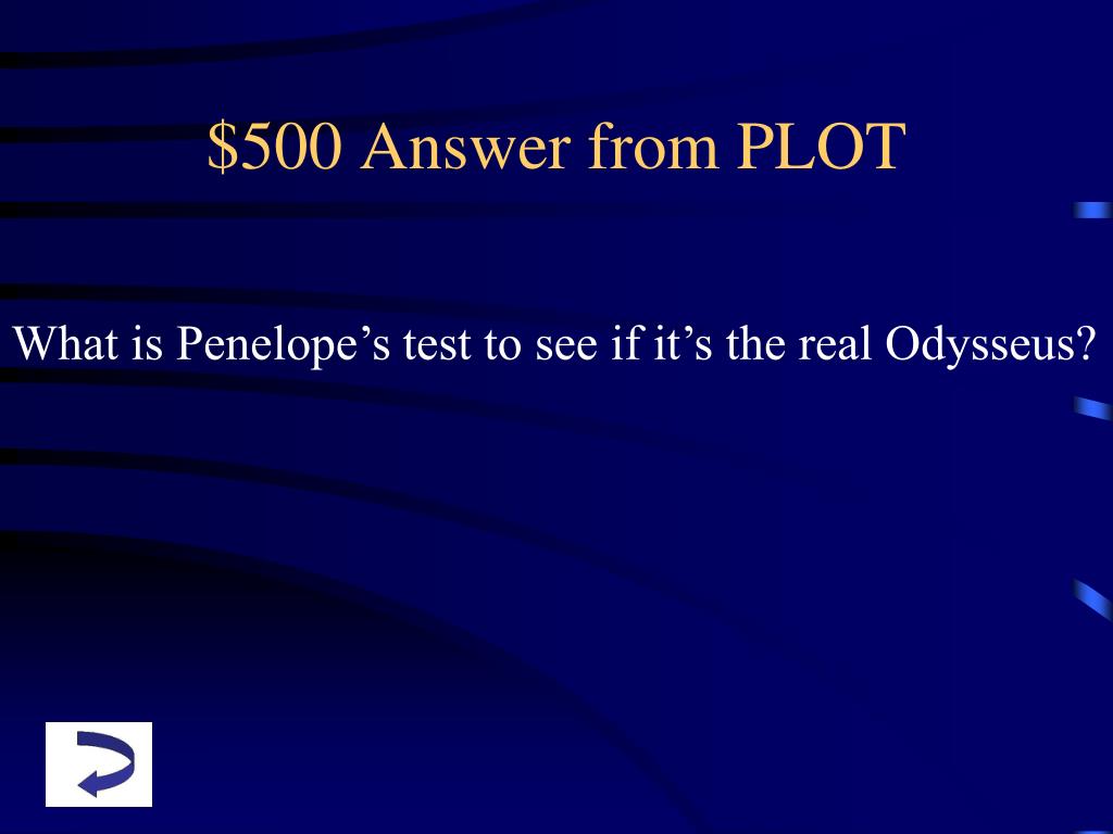 $500 Answer from PLOT What is Penelope’s test to see if it’s the real Odysseus?
