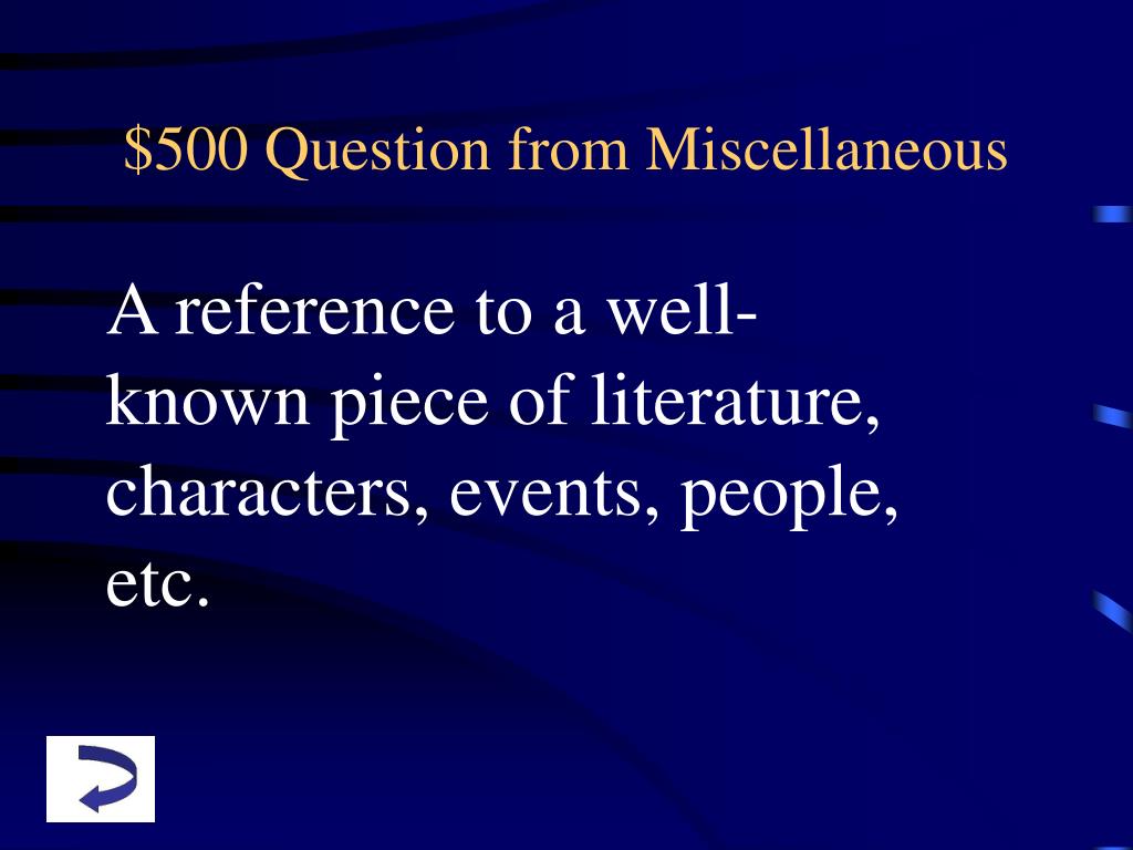 $500 Question from Miscellaneous A reference to a well-known piece of literature, characters, events, people, etc.