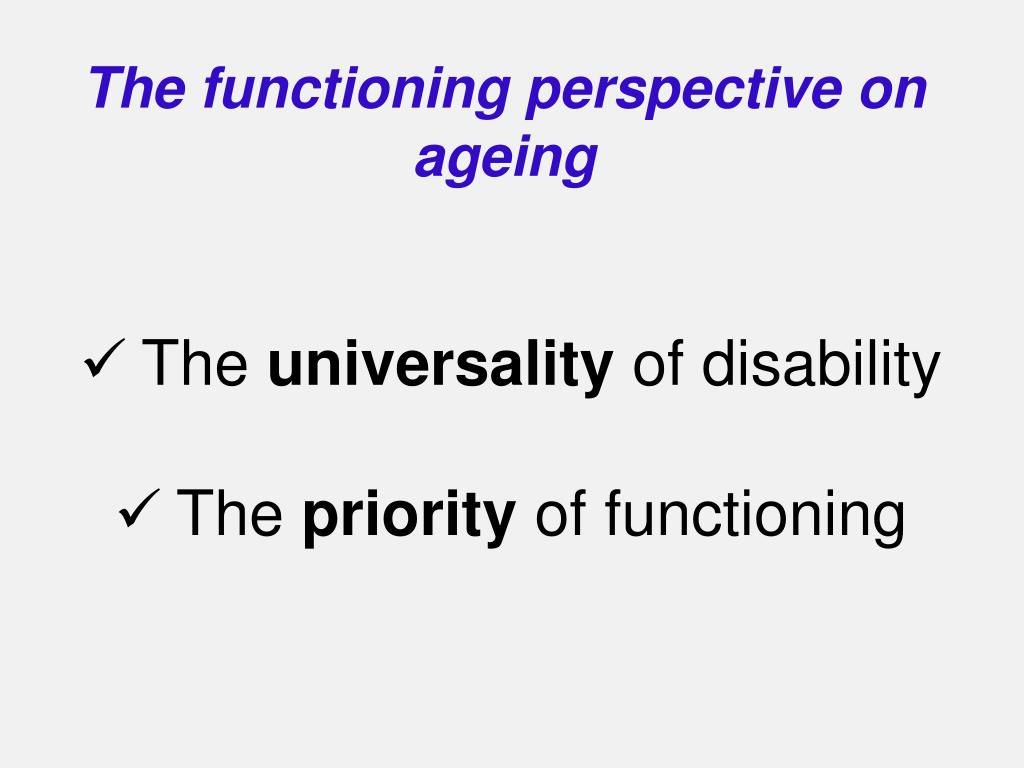 The functioning perspective on ageing The universality of disability The priority of functioning