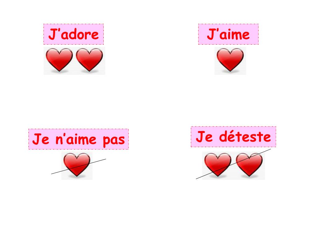 J’adore J’aime Je déteste Je n’aime pas
