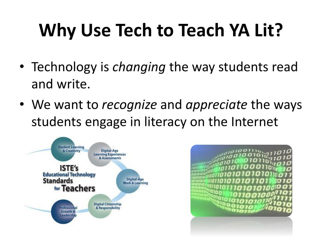 Why Use Tech to Teach YA Lit? • Technology is changing the way students read and write. • We want to recognize and appreciate the ways students engage in literacy on the Internet