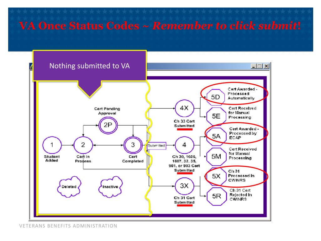 VA Once Status Codes ~ Remember to click submit! Click on this box and it brings up a flow chart of all status codes