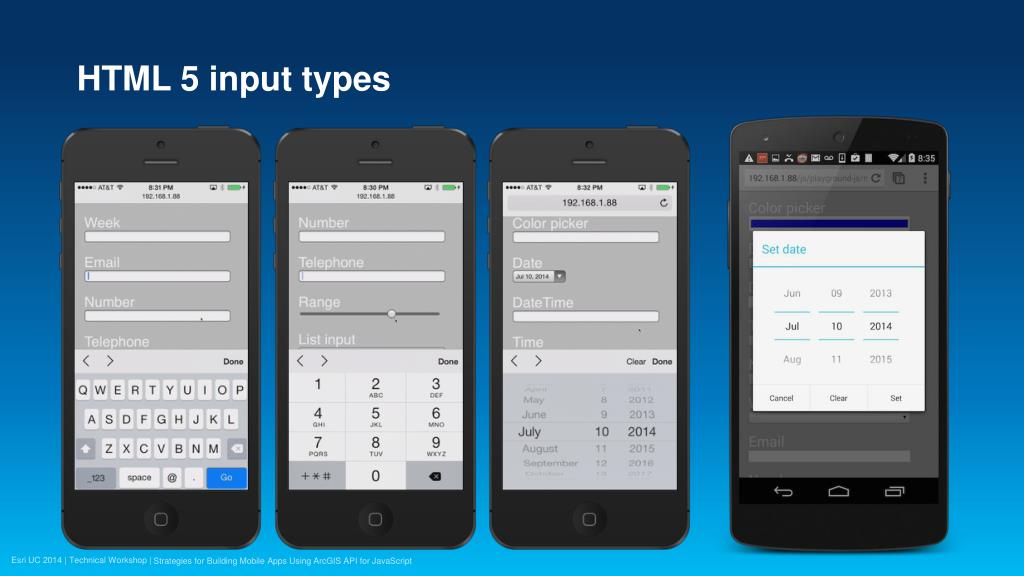 HTML 5 input types Strategies for Building Mobile Apps Using ArcGIS API for JavaScript