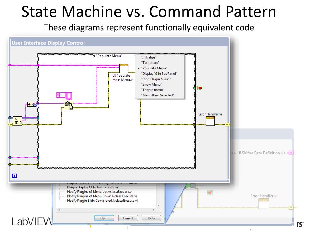 State Machine vs. Command PatternThese diagrams represent functionally equivalent code