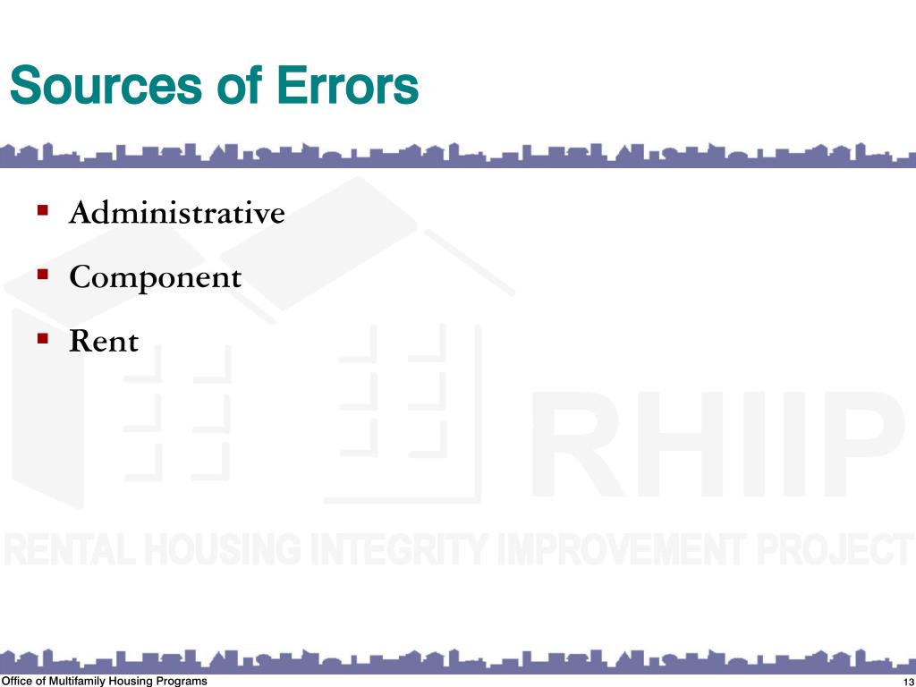Sources of Errors Administrative Component Rent Office of Multifamily Housing Programs