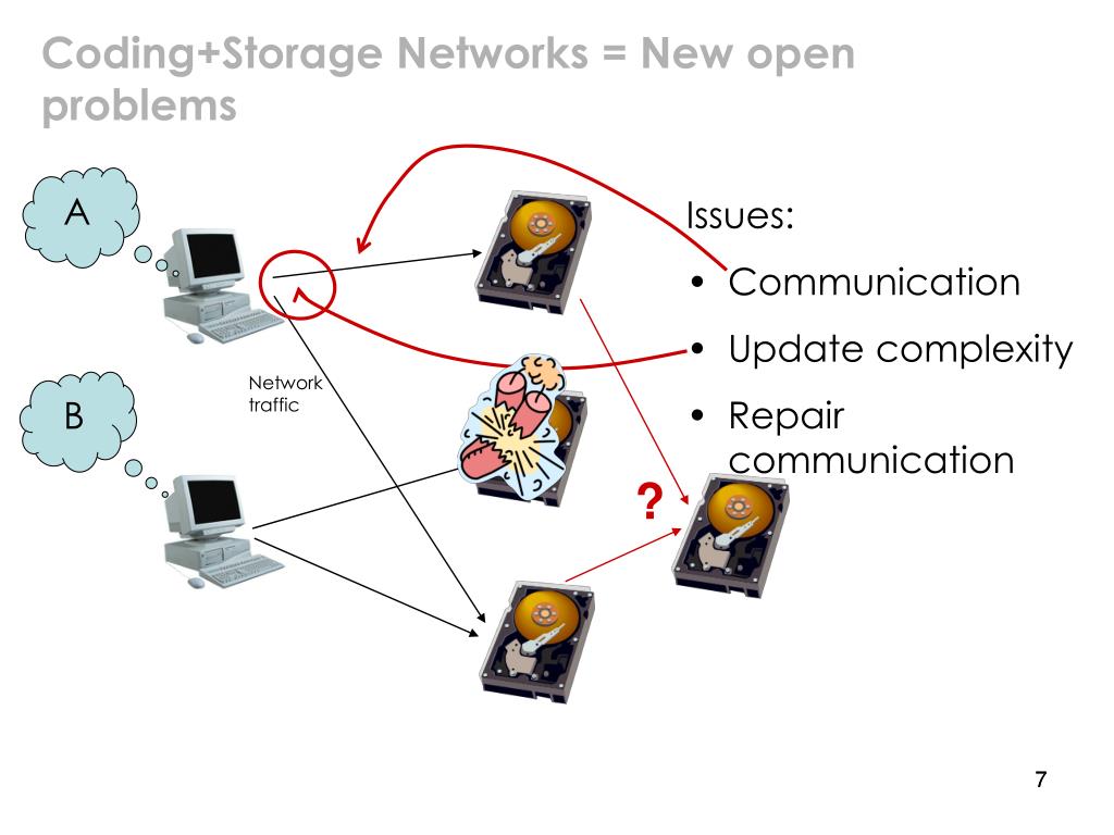 Coding+Storage Networks = New open problems A • Issues: • Communication • Update complexity • Repair communication Network traffic B ? 7